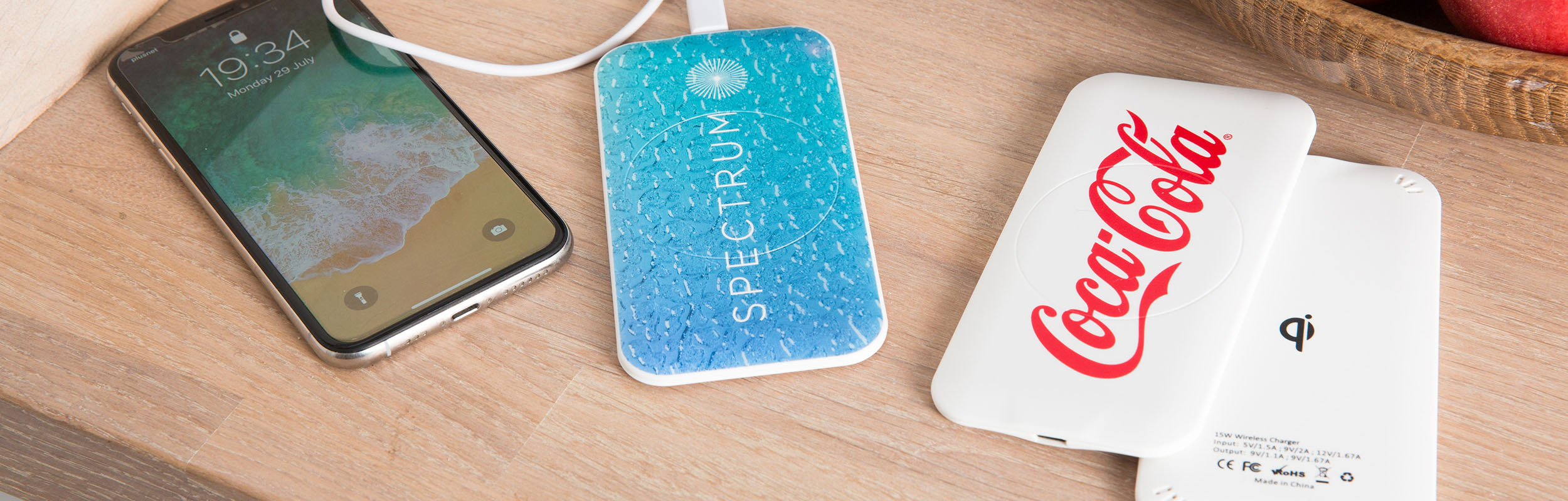 Branded power banks, branded wireless charging pads and branded charging cables are custom printed with your logo to make the perfect promotional gift.